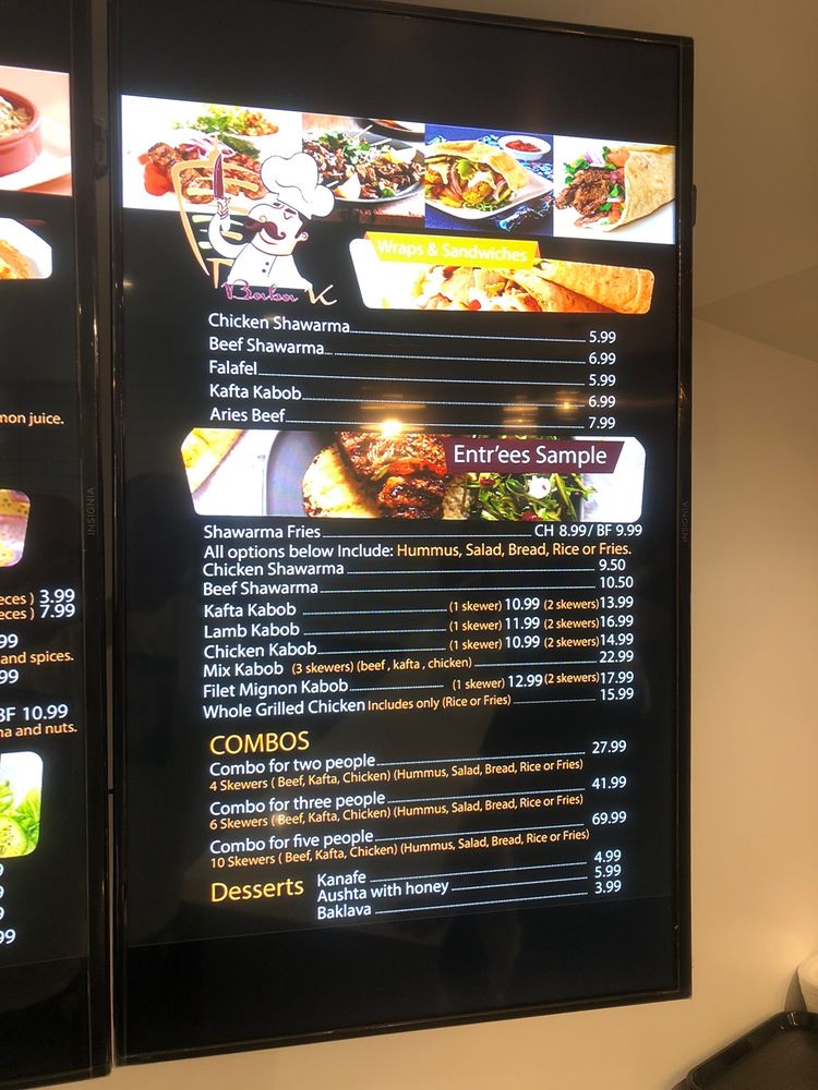 Ten skewers, filet mignon, kafta, chicken, hummus, salad, bread, rice or fries.